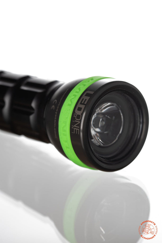 The LED ONE Mini body is machined from a solid piece of Delrin®, an exceptionally rigid and durable construction thermoplastic. The head is made from hard anodised aluminium, which makes it resistant to abrasion and weather factors.