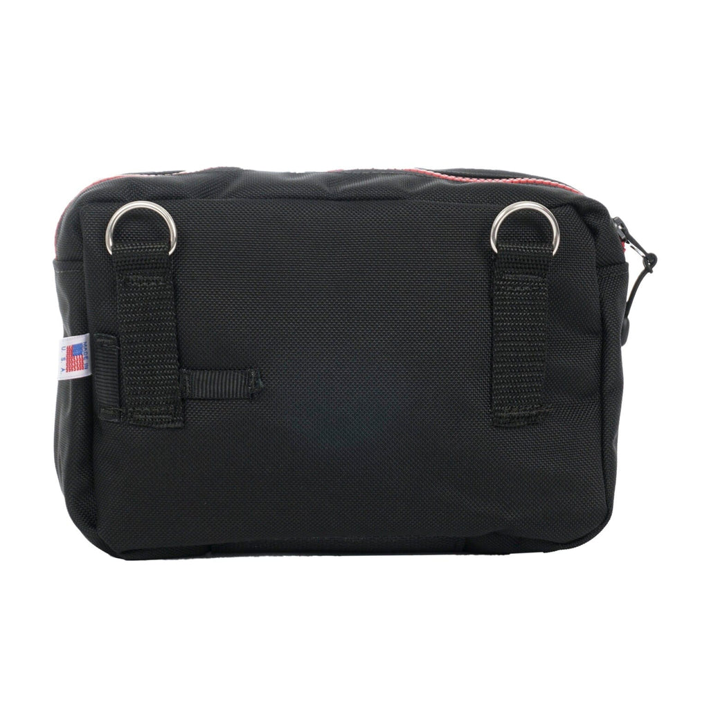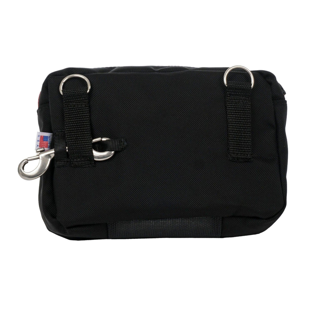- Two 1-inch (25 mm) stainless D-rings used in conjunction with double bolt snaps (see here) to clip the pocket off as a bum pouch while sidemounting