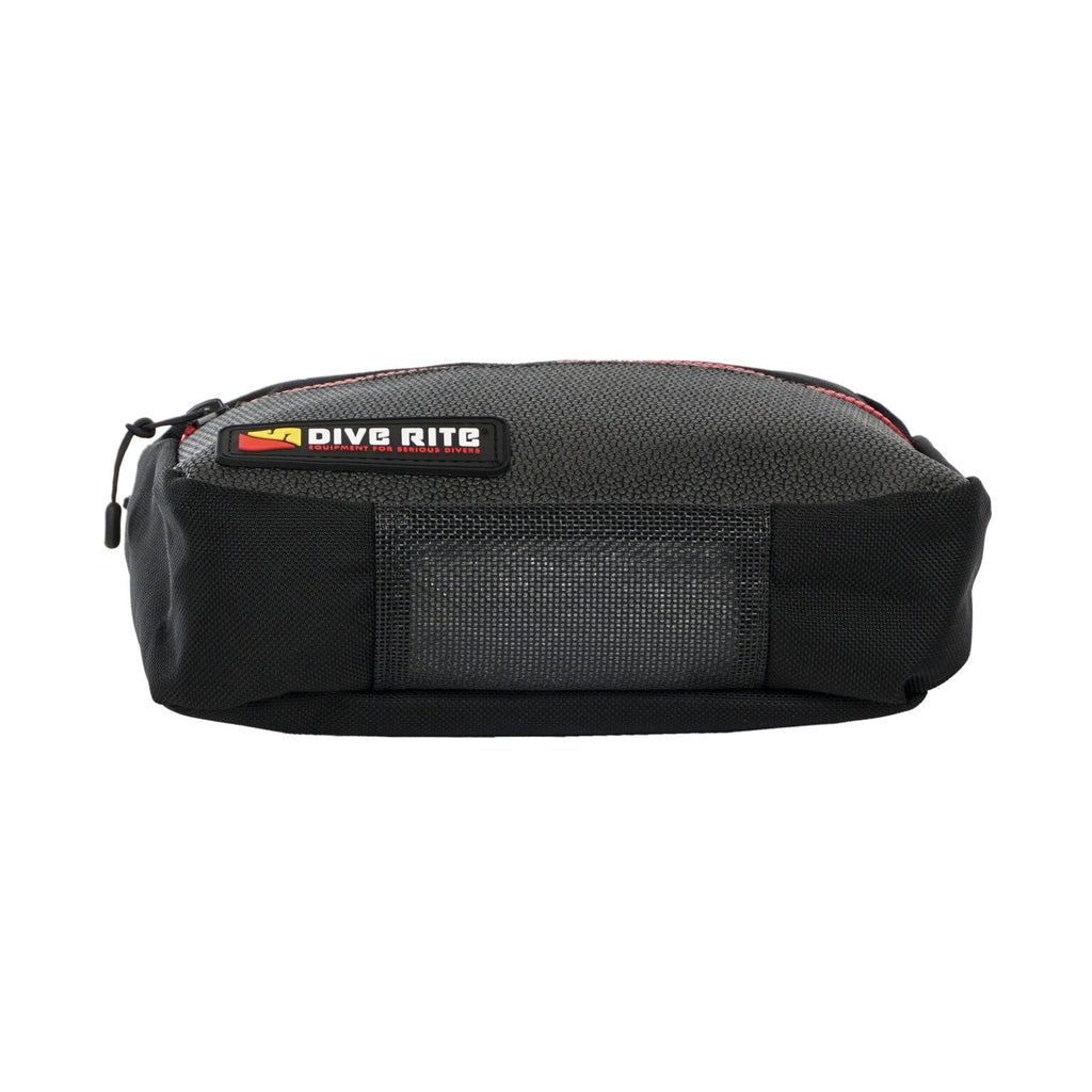 Dive Rite's  2-Zip Sidemount Bellows Pocket is a large bellows pocket that allows a sidemount diver to carry everything they need for a dive, including: spools, notebook, back-up lights, line arrows, and more. With two compartments, smaller items can be separated in the front with larger items in the main compartment. A 36-inch (92 cm) looped lanyard on the inside of the large compartment allows the diver to attach tools and gear so items can be quickly deployed without the fear of losing one. The back of the pocket allows for several mounting options including two 1-inch metal d-rings for butt mounting and webbing straps for waist mounting. The Sidemount Bellows Pocket also allows for single clip mounting using a double ended snap.