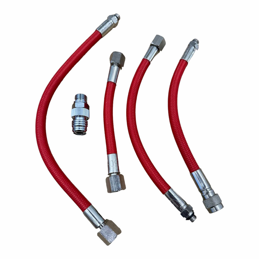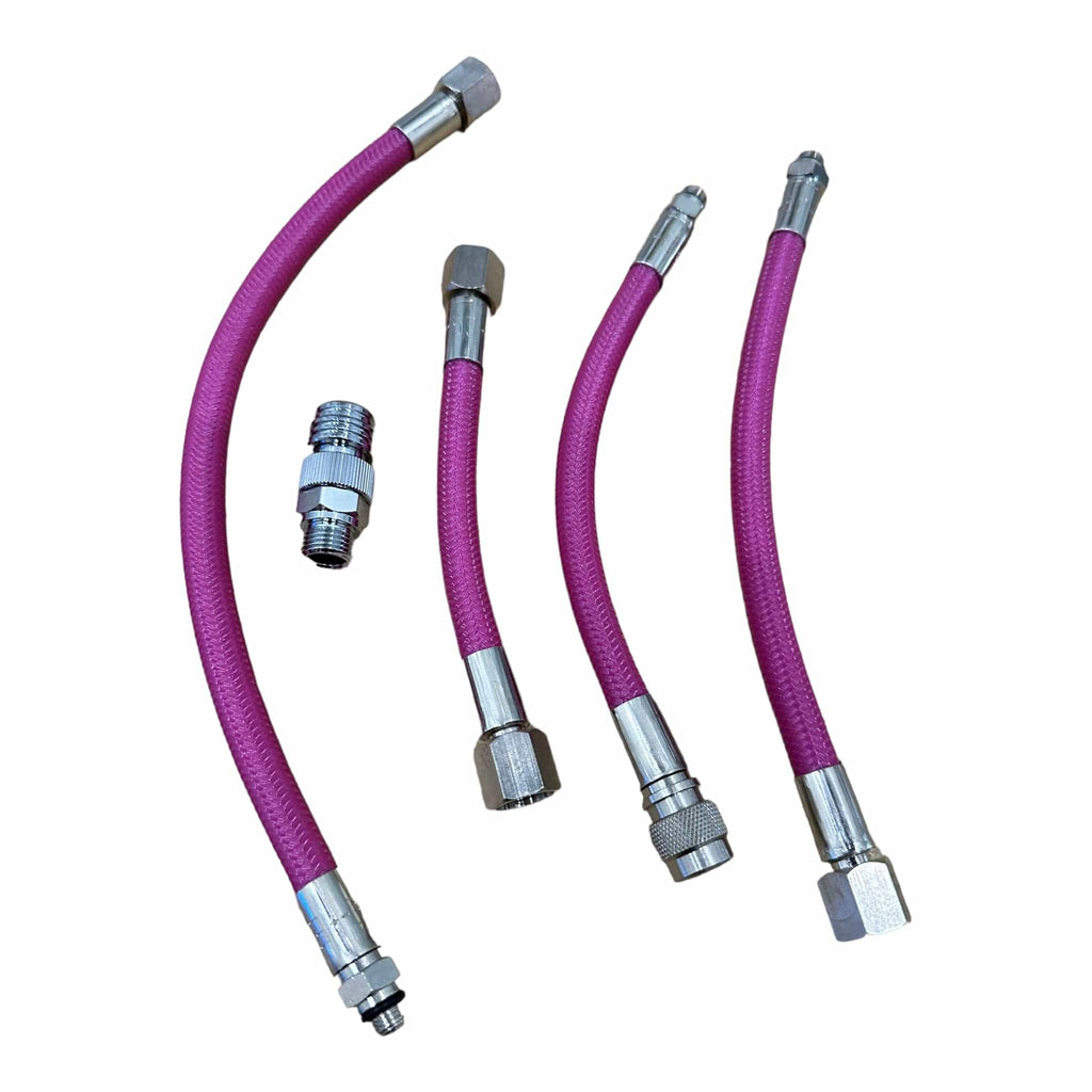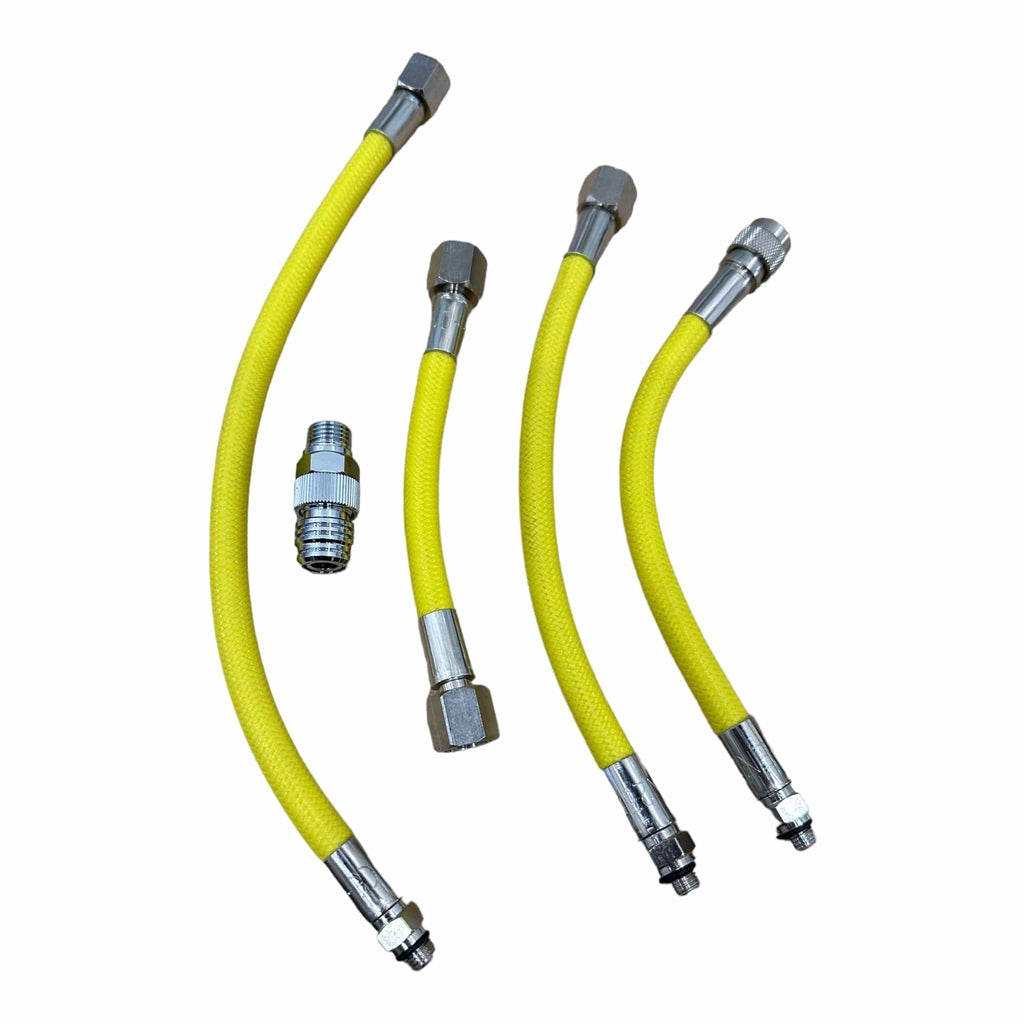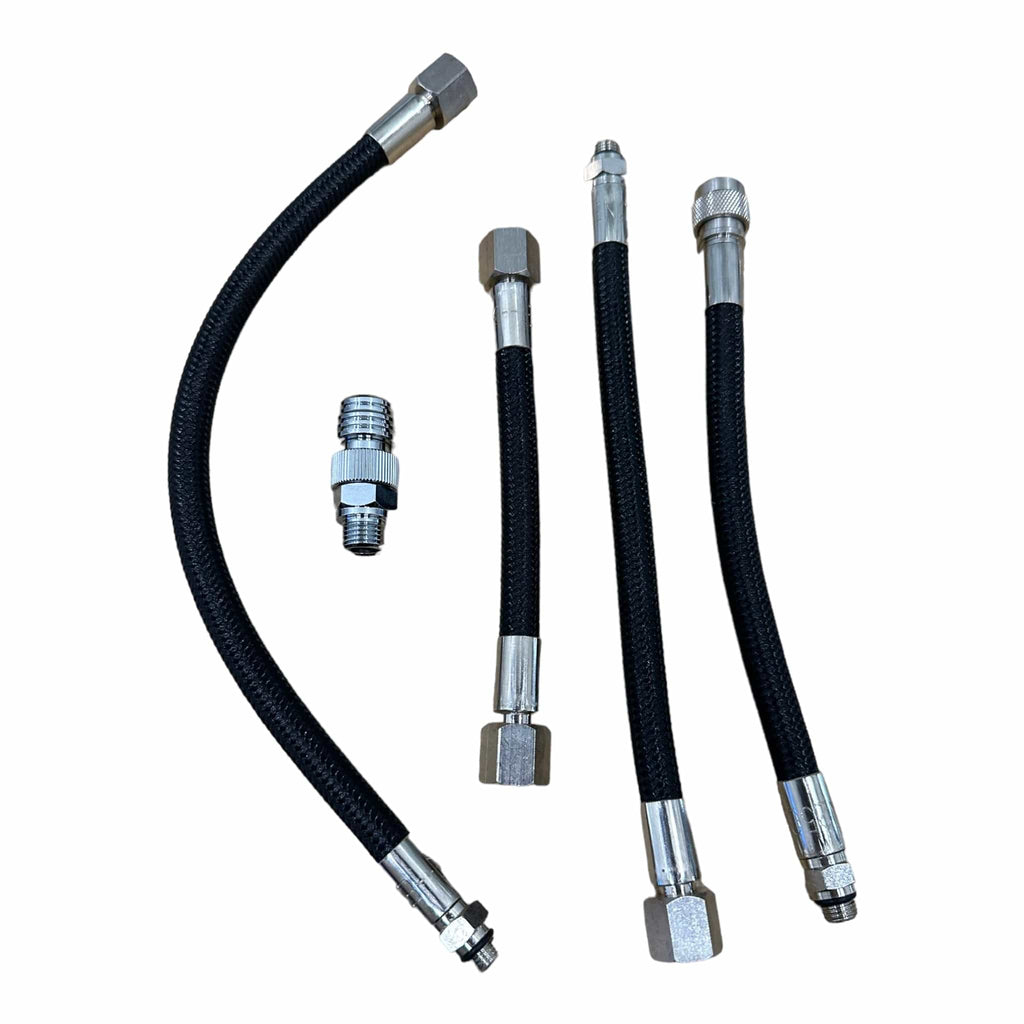 Kit comes with all 4 LP hoses for the Dive Rite CM CCR. This is 3 for the O2 side and 1 for the DIL QC6 connection. This kit is designed to work with the QC6 diluent feed and comes with the new Dive Rite - O2 lock out BC fitting.