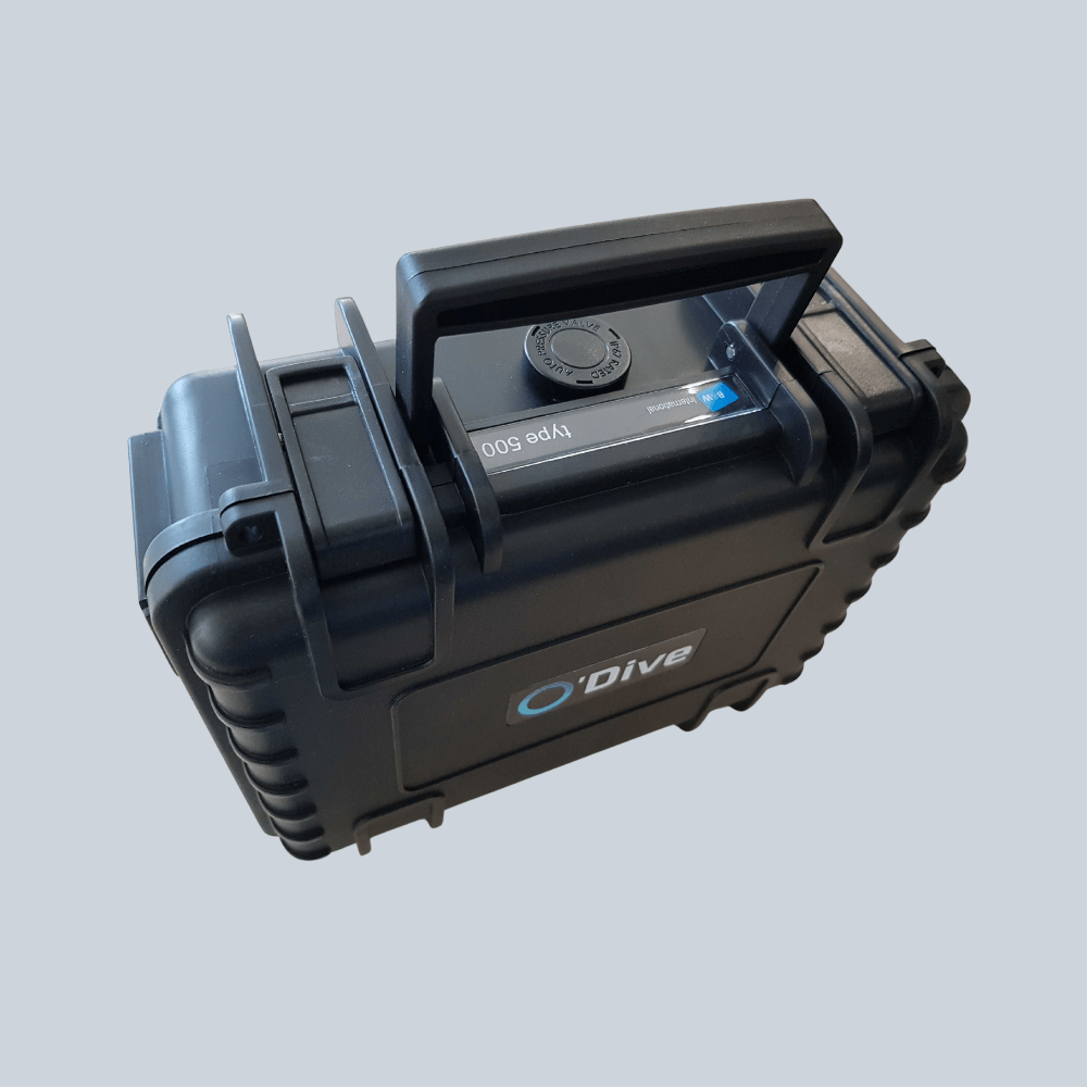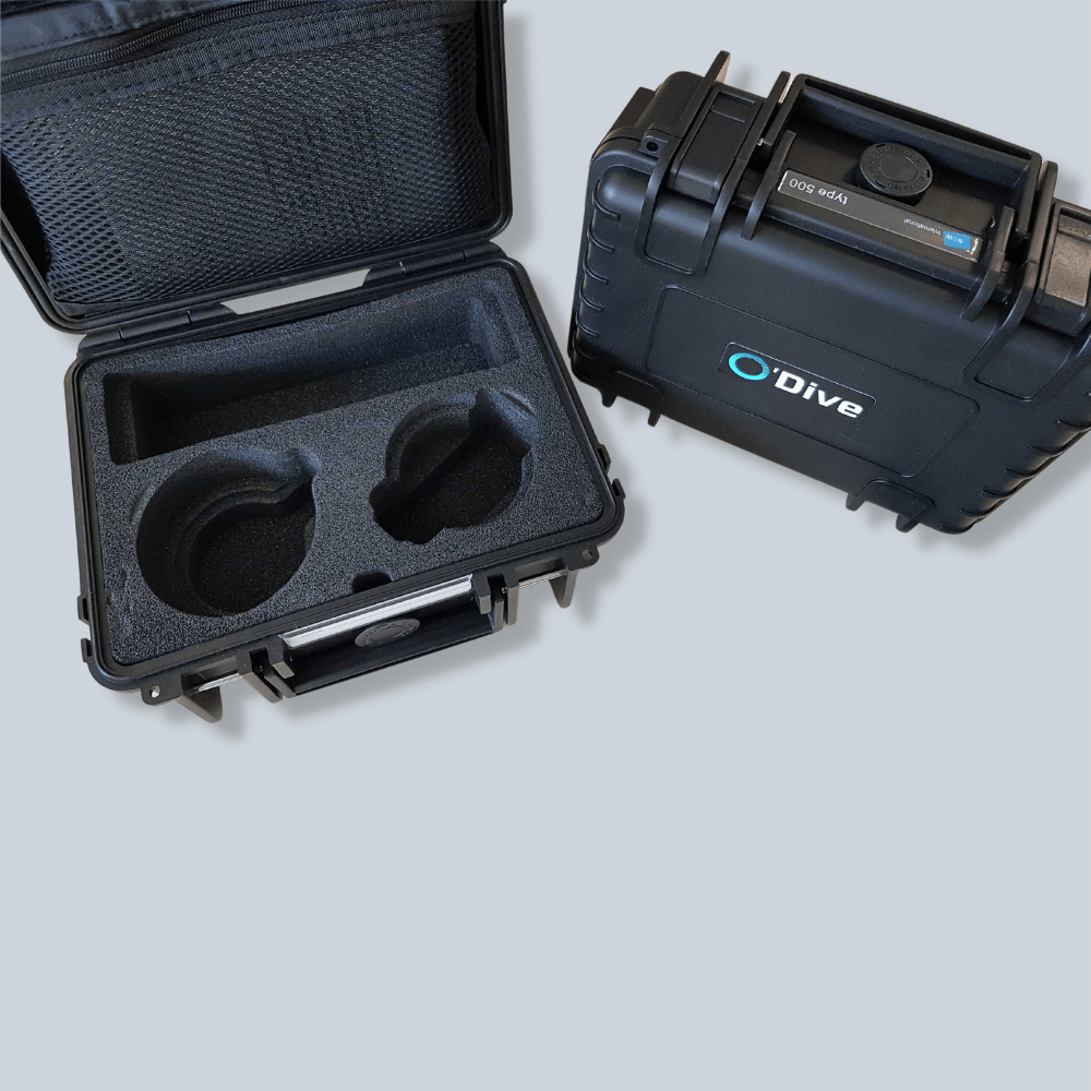 This O-Dive case is waterproof and setup for your O'Dive Sensor, O-Dive Charger, and O-Dive Acoustic Gel.