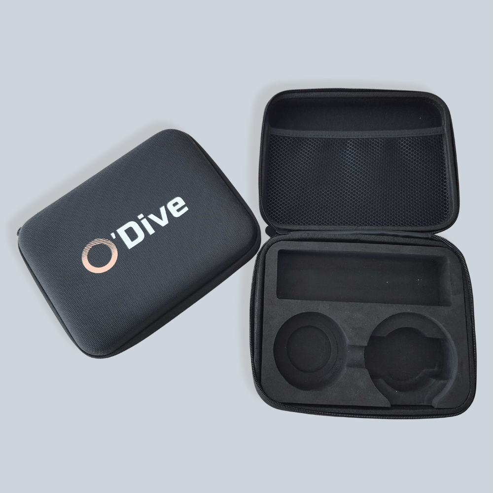 The O-Dive soft case is setup for your O'Dive Sensor, O-Dive Charger, and O-Dive Acoustic Gel.