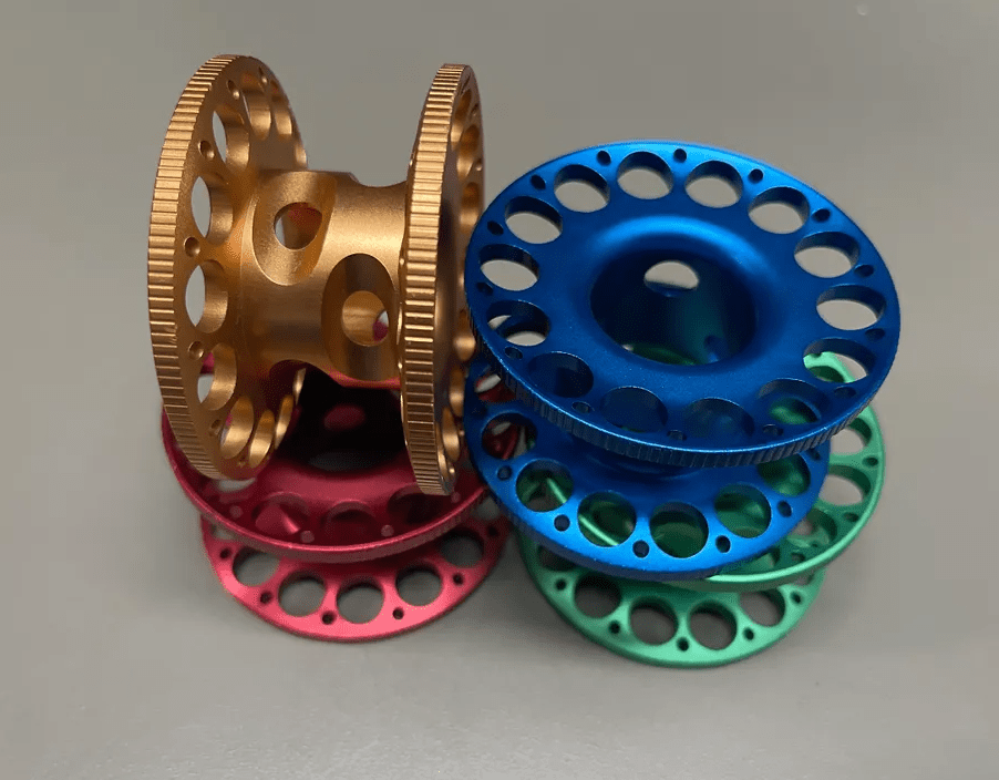The Cyborg Pirate Aluminum Finger Spool is made out of a premium aluminum alloy that is lightweight, corrosion resistant, and extremely durable. Probable most unique is that these spools are machined in Phoenix, Arizona so they are 100% American made.
