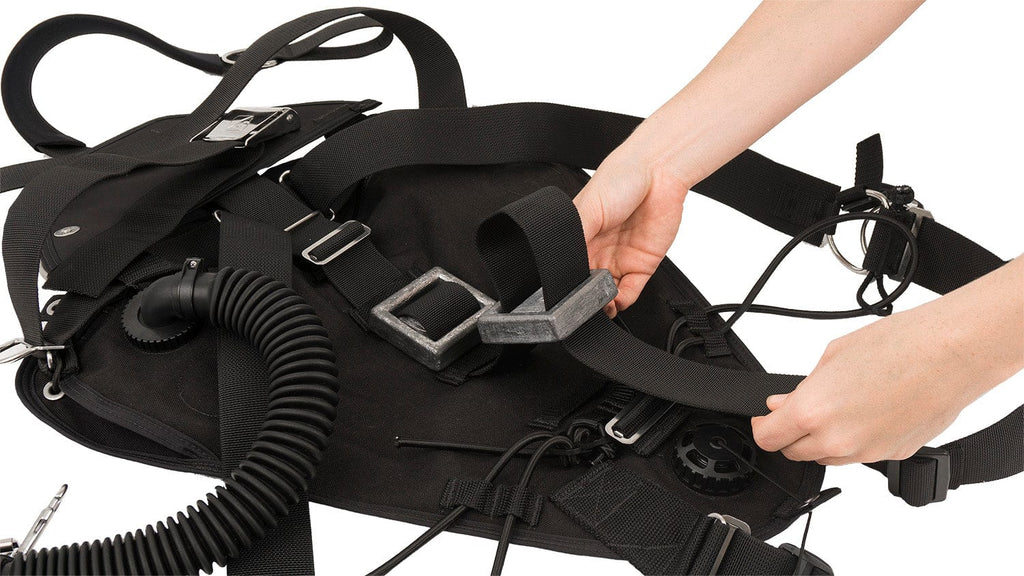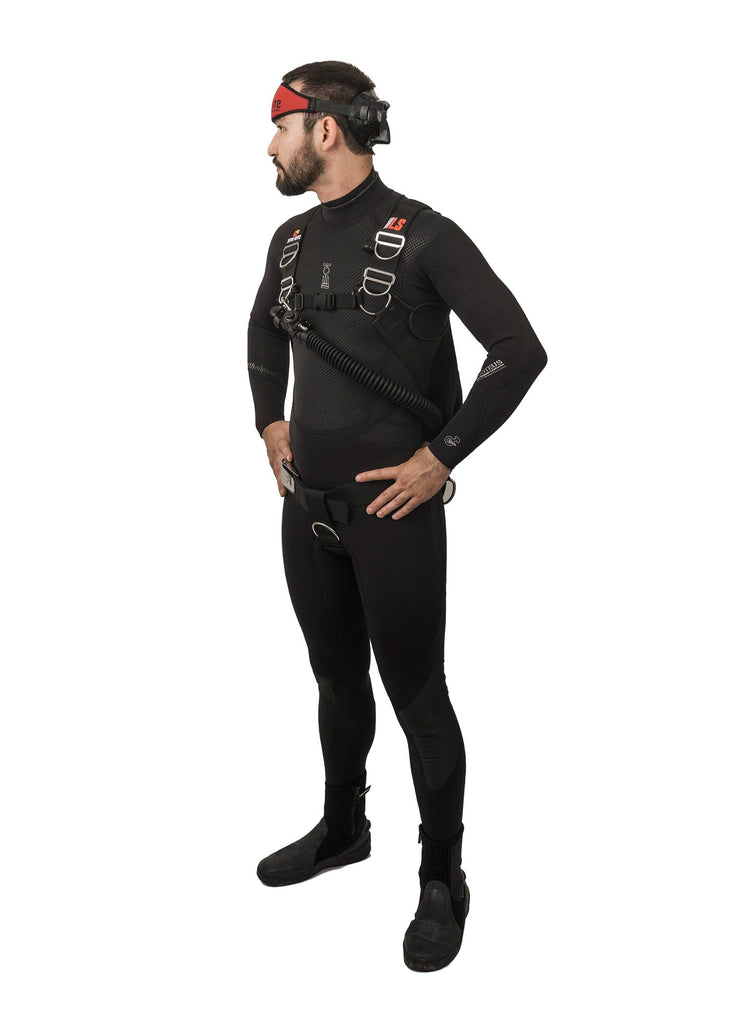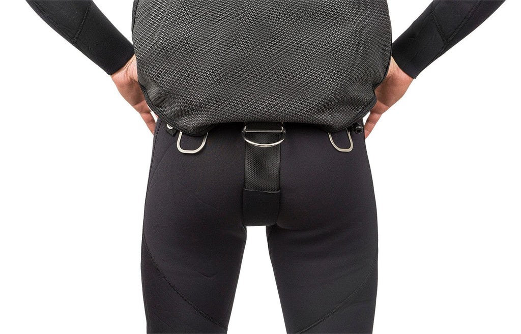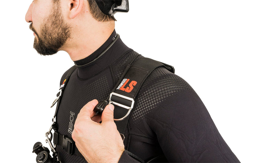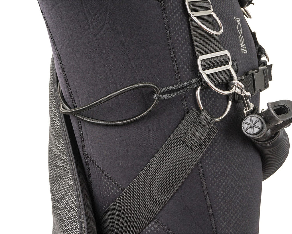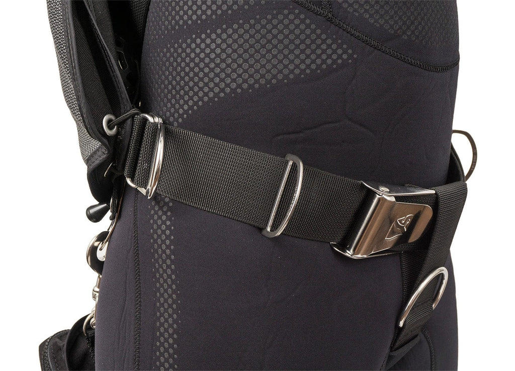 Deluxe style harness provides a customizable and comfortable fit for nearly any size diver. The harness can be easily replaced. The waistband is designed to sit lower on the diver’s hips, optimal for trimming out cylinders attached to the waist.