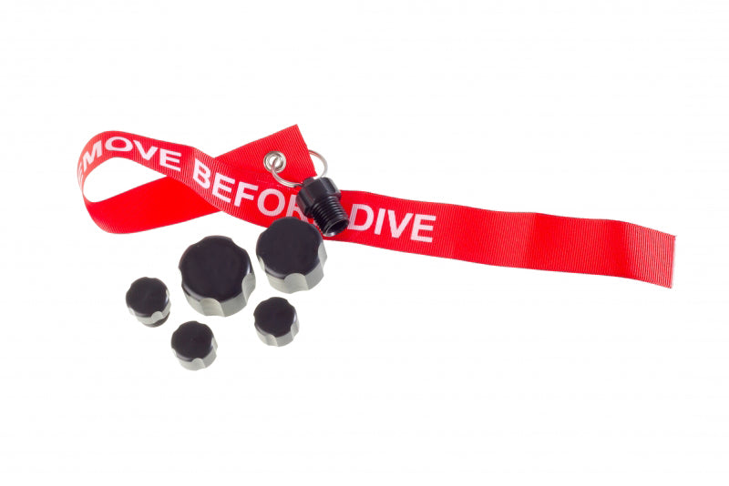 Caps set includes 6 caps and ribbon "Remove Before Dive" for CCR Liberty.