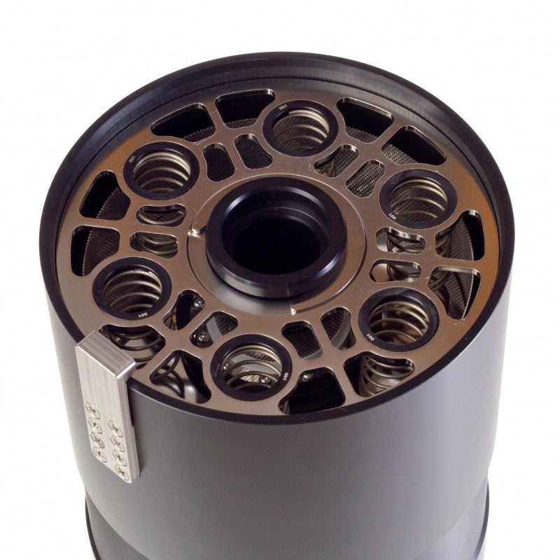 Standard sized scrubber provides 4-6 hours of scrubbing time. Very comfortable and intuitive to fill. The inner scrubber is made from very fine stainless steel mesh, the lid is made from thick plastic. It allows very comfortable filling. Opening and closing is very quick and simple. The functional and reliable water trap is placed in the bottom. During the stress test according to standard EN 14143:2013 there was proven that the scrubber duration is 2 h 48 min. The test conditions were 4°C, breathing 40 l/min, CO2 production 1.6 l/min. Usual stack time is 4 hours in cold water and 6 hours in warm water with moderate effort.