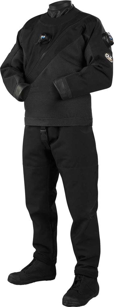 A world class suit developed for overhead environments, the CLX450 incorporates lightweight materials tough enough to crawl through narrow restrictions yet fast to dry for travel. The CLX450 provides a quick dry upper body made of a heavy-duty blend of CORDURA®, Butyl Rubber & Polyester. Technical divers following the rule of thirds require a drysuit designed for the best fit with ballistic abrasion resistance. To provide optimal freedom of movement while finning, this suit is constructed with a more flexible Polyester trilaminate bottom. Fondly referred to as the "Tuxedo of Drysuits", the CLX450 is tailored for to meet the demands of performance divers.