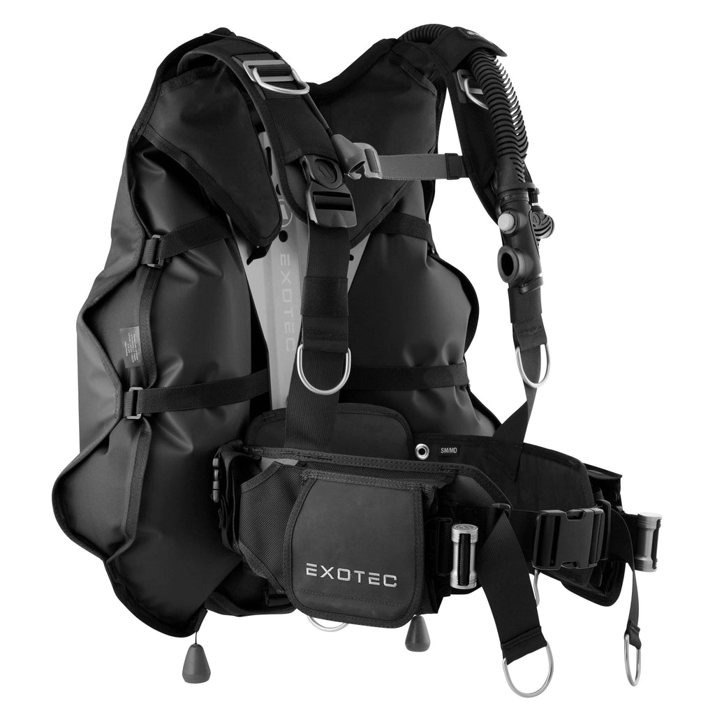 Experience the ultimate connection between diver and equipment with the Apeks Exotec BCD. The first of its kind, the Exotec features an articulated backplate that pivots at the waist. This articulation allows the Exotec to work in harmony with the natural movement of your body, both in and out of the water.