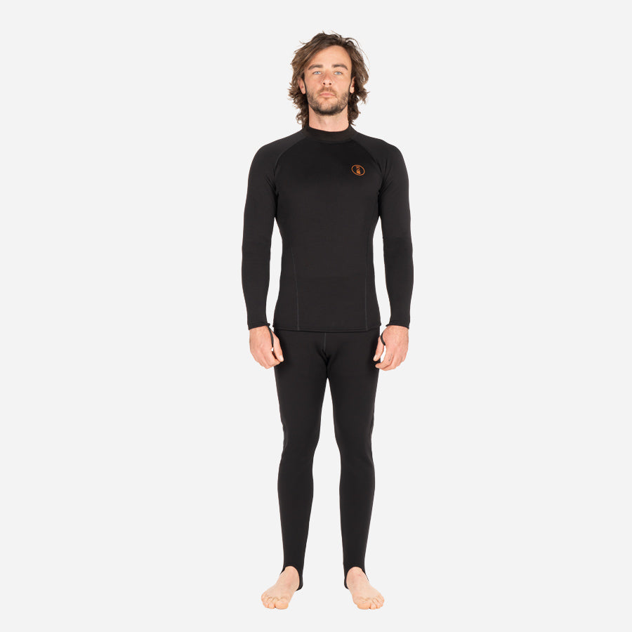 The ultimate base layer for use under a drysuit. Made using Polartec® Powerstretch® originally developed for NASA, the Xerotherm traps a layer of air - a much better insulator than water next to the skin, keeping the wearer drier and more comfortable. The range is designed to be worn under another undersuit or on its own under a neoprene drysuit.
