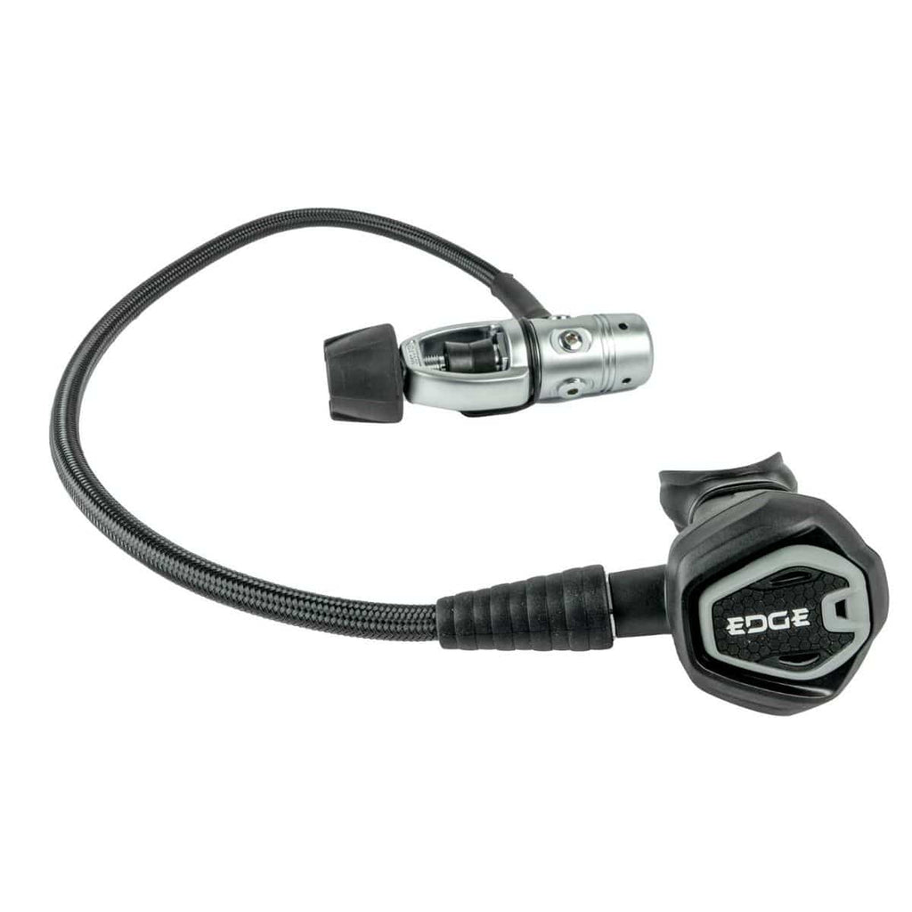 Small compact yet rugged designed regulator with an Edge Flex hose. The Edge NANO regulator system combines performance and reliability in a small package and offers it at a low-price. Rugged and economical, this regulator is a great choice for a new diver’s rig or can take the high-use demands of a rental department. It can also be used with either Air or Nitrox up to 40 % right out-of-the-box.