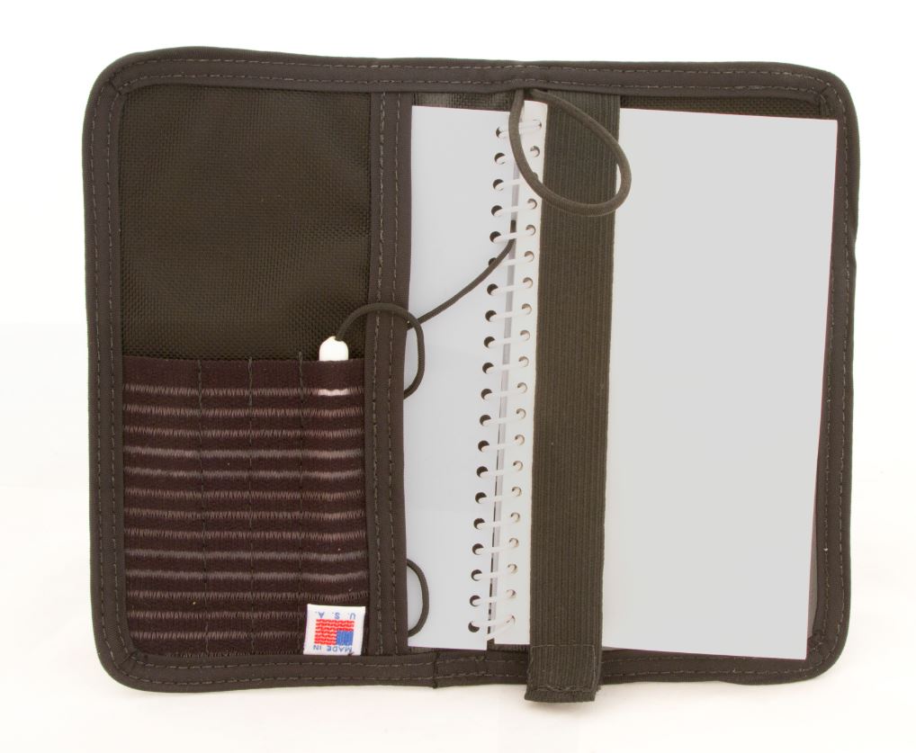 - The inside right panel contains a clear pocket, useful for storing a compass for navigation or survey