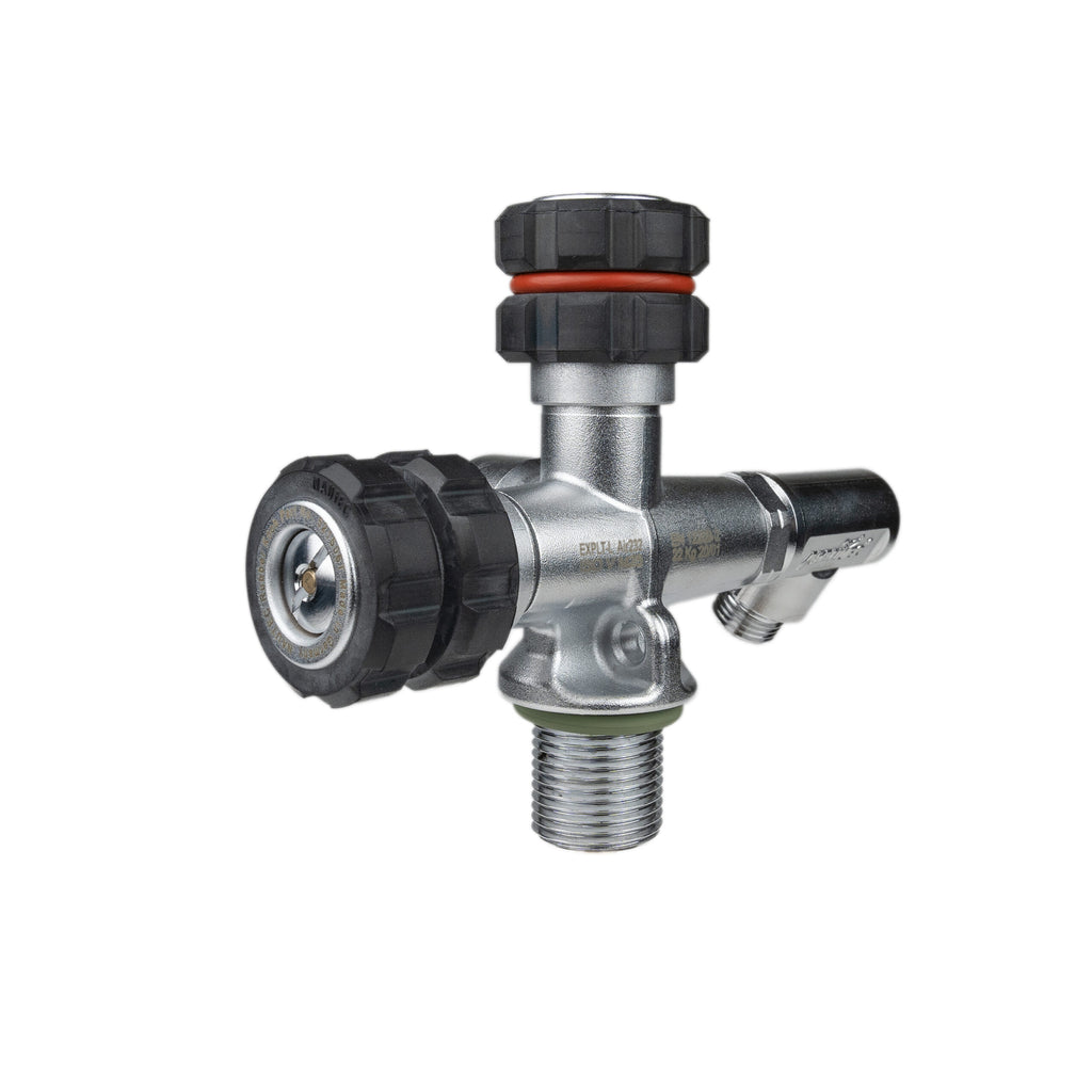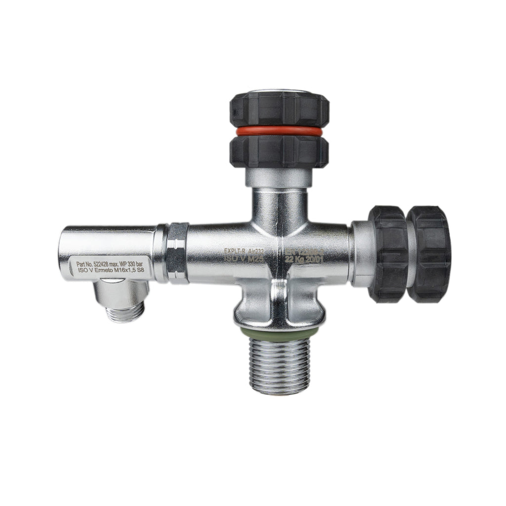 After two years of development work, we are very proud to present our EXPLORER valve set. The set is available in 232 & 300 Bar versions and 3/4” NPS and M25 versions. Versions sold in North America are provided with a burst assembly, in accordance with CGA V4.1. This is what some refer to has a "Lola Style" valve.