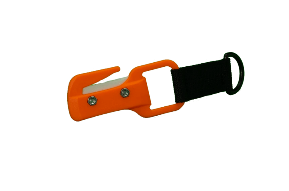 Single sided easy to use line cutter. Compact size allows for easy attachments to your dive gear. Sheath allows for multiple attachment configurations. Comes with a ceramic blade which does not rust.