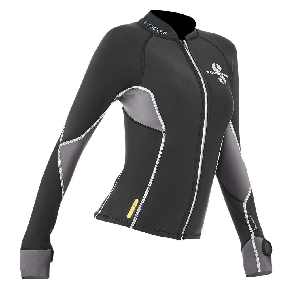 When it comes to thermal protection, nothing beats neoprene. SCUBAPRO’s Everflex 1.5mm long sleeve thermal top keeps you warm while providing protection from scrapes and stings. Sporting a new design and high-tech materials ideal for tropical diving, snorkeling or pool training, this long sleeve warmer is made with a special water-repellant, high-stretch Everflex neoprene on the outside and a combination of fleece and plush on the inside. The top offers warmth, comfort and lots of range of motion, dries quickly and is great for layering. Wear it by itself or match it with new Everflex 1.5mm pants, shorts or leggings for a total warm water ensemble.