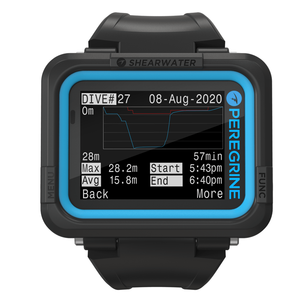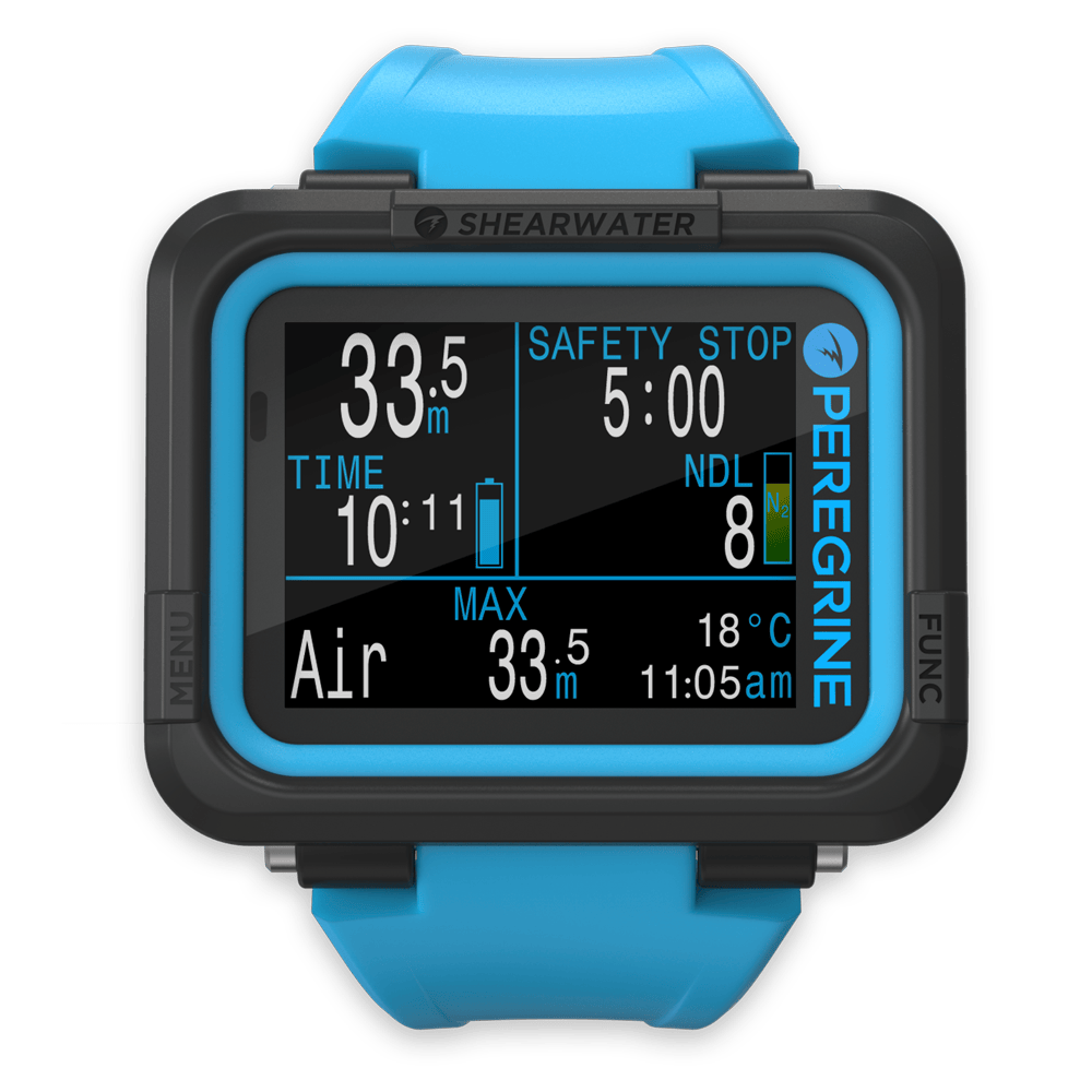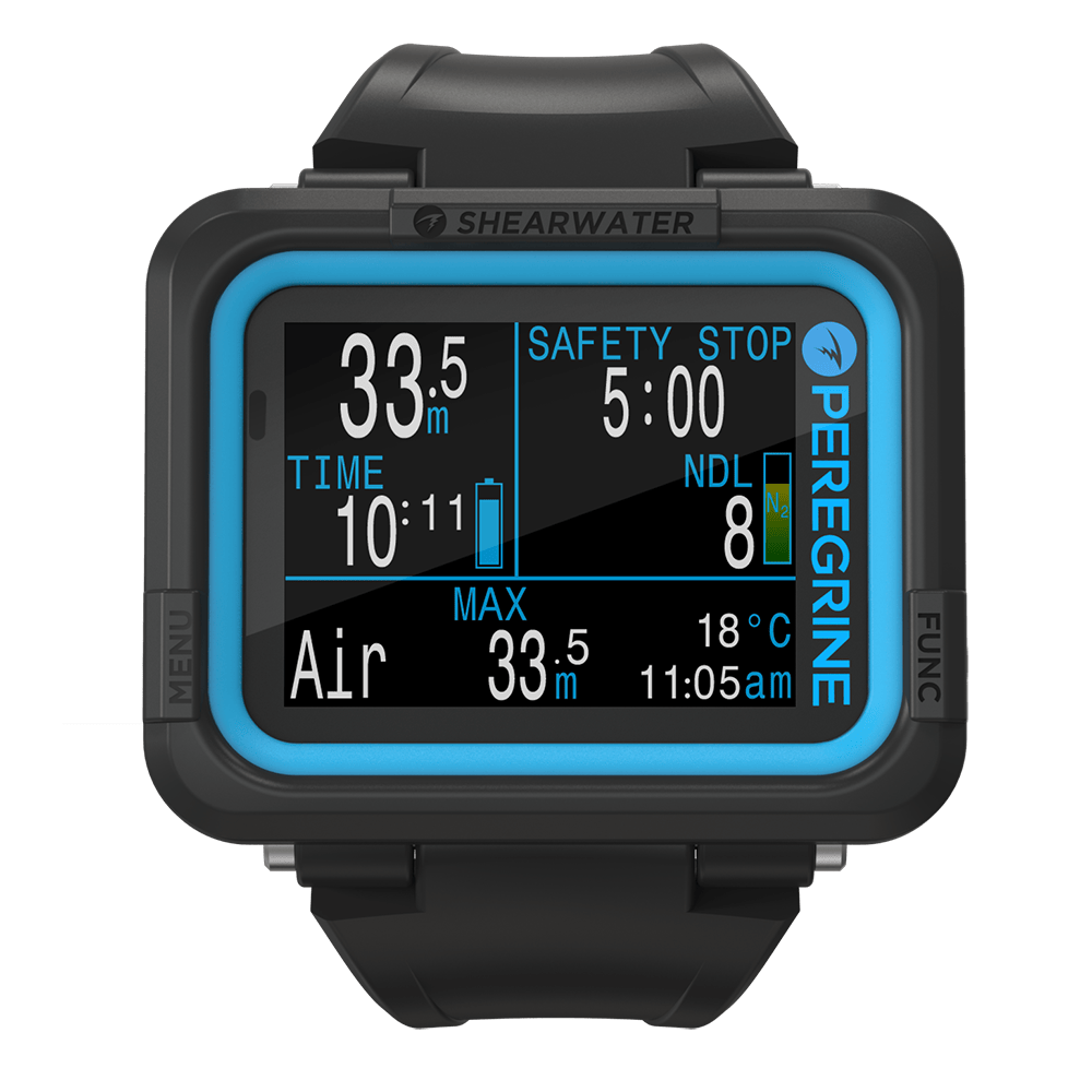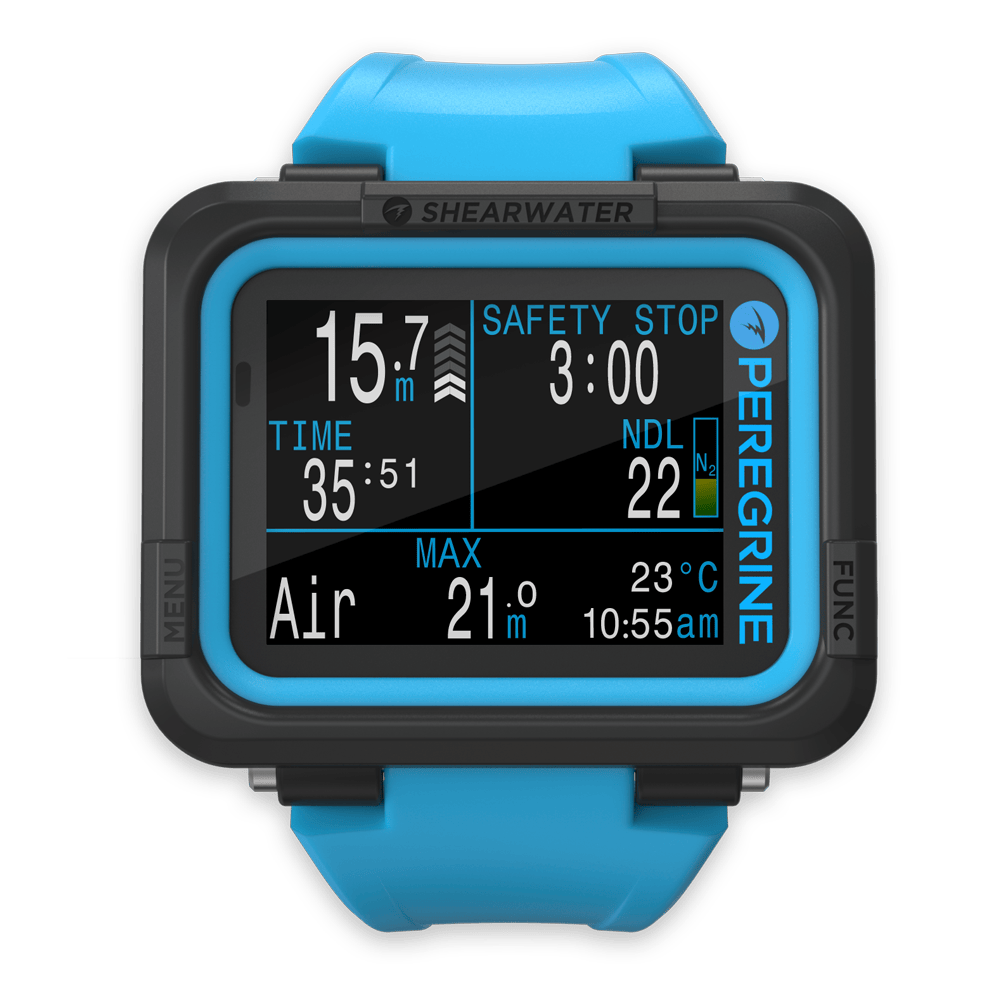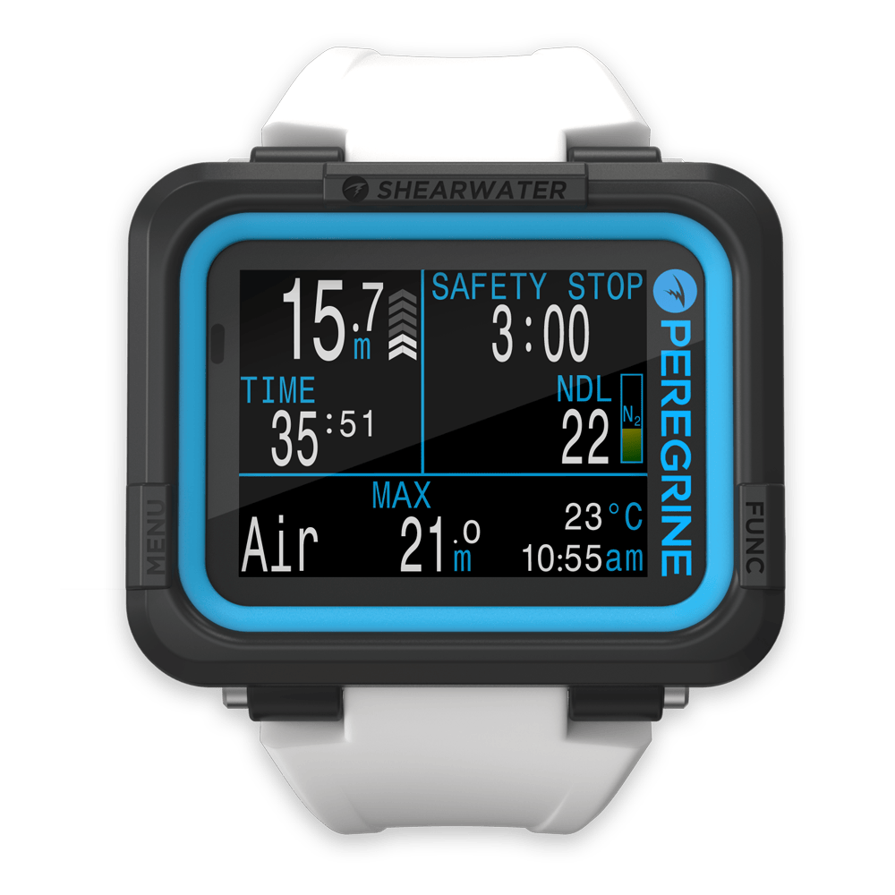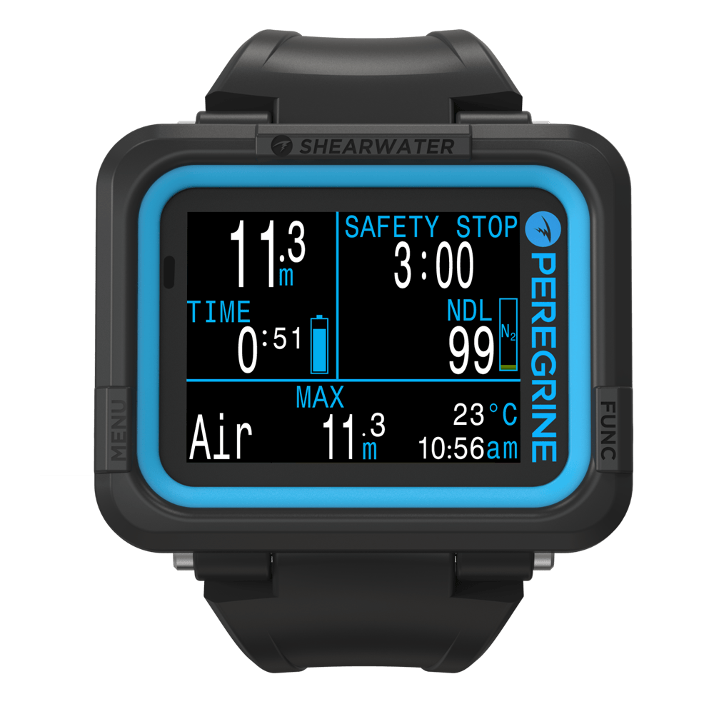 The Peregrine is a simple and easily accessible, full colour, multi-gas dive computer. The large screen and 2-button functionality make it easy to navigate and an ideal companion for sport divers.