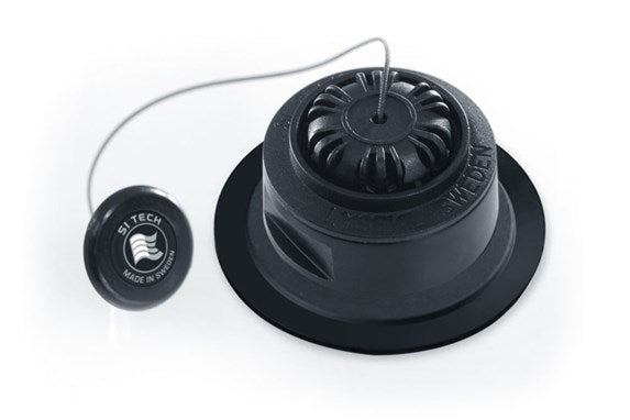 Spring loaded Dump Valve with twin check valves and cord. Intended for use in inflatable units such as rebreathers, lift bags, BCD´s etc. Double check valves reduce water intrusion to a minimum. A moving pressure plate prevents the check valve from tacking to the spring retainer when dumping manually.