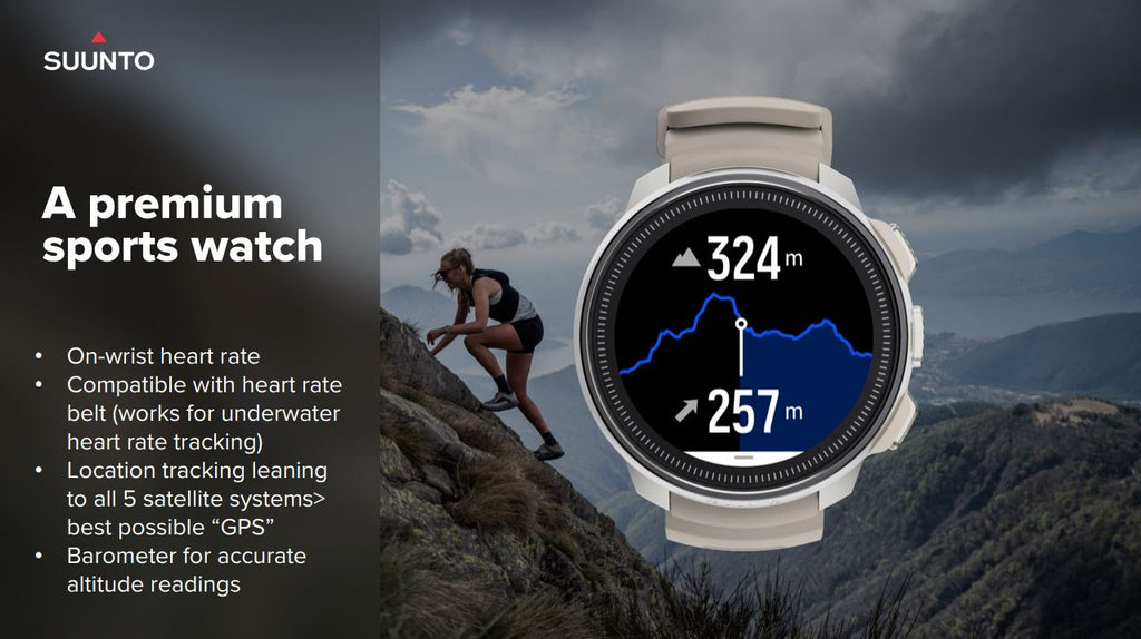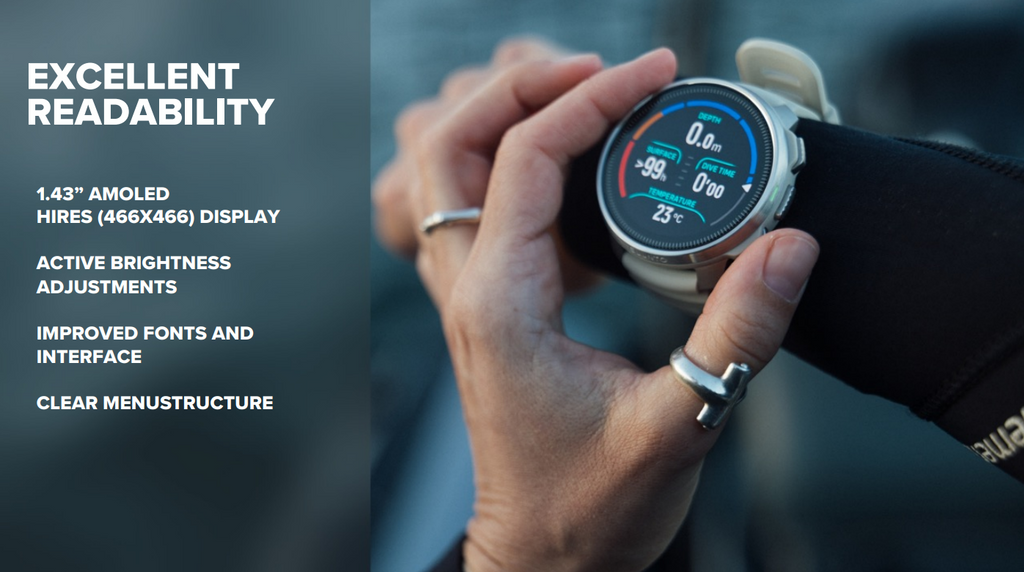 Ocean is the perfect blend of Suunto dive features with outdoor sports features in a compact and comfortable sized watch unit. The AMOLED screen means clear readability no matter what function you are using.