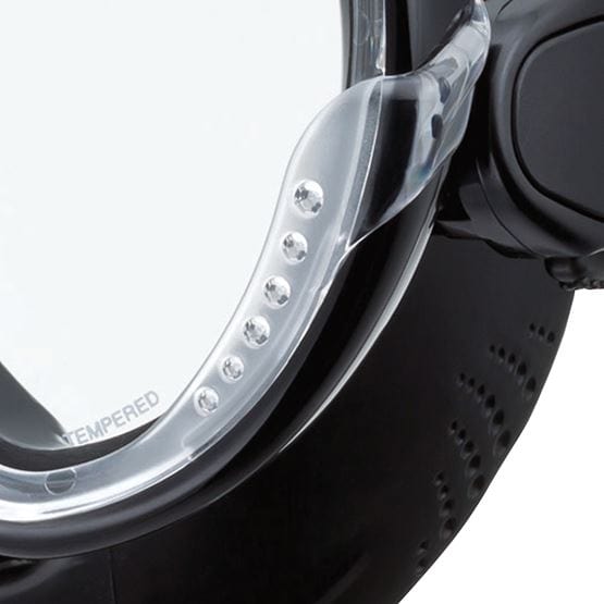 The M1002 Tina Mask is the latest design to come from Freedom Technology. It is a low profile 1-window mask which includes a crystal accent and accessory dock for personalization.Â