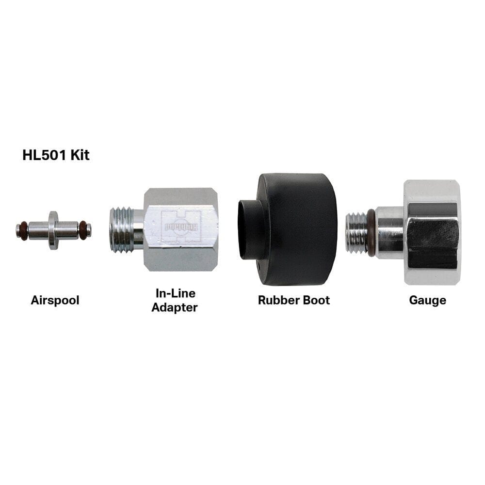 - Kit includes gauge with rubber boot, in-line adapter and airspool