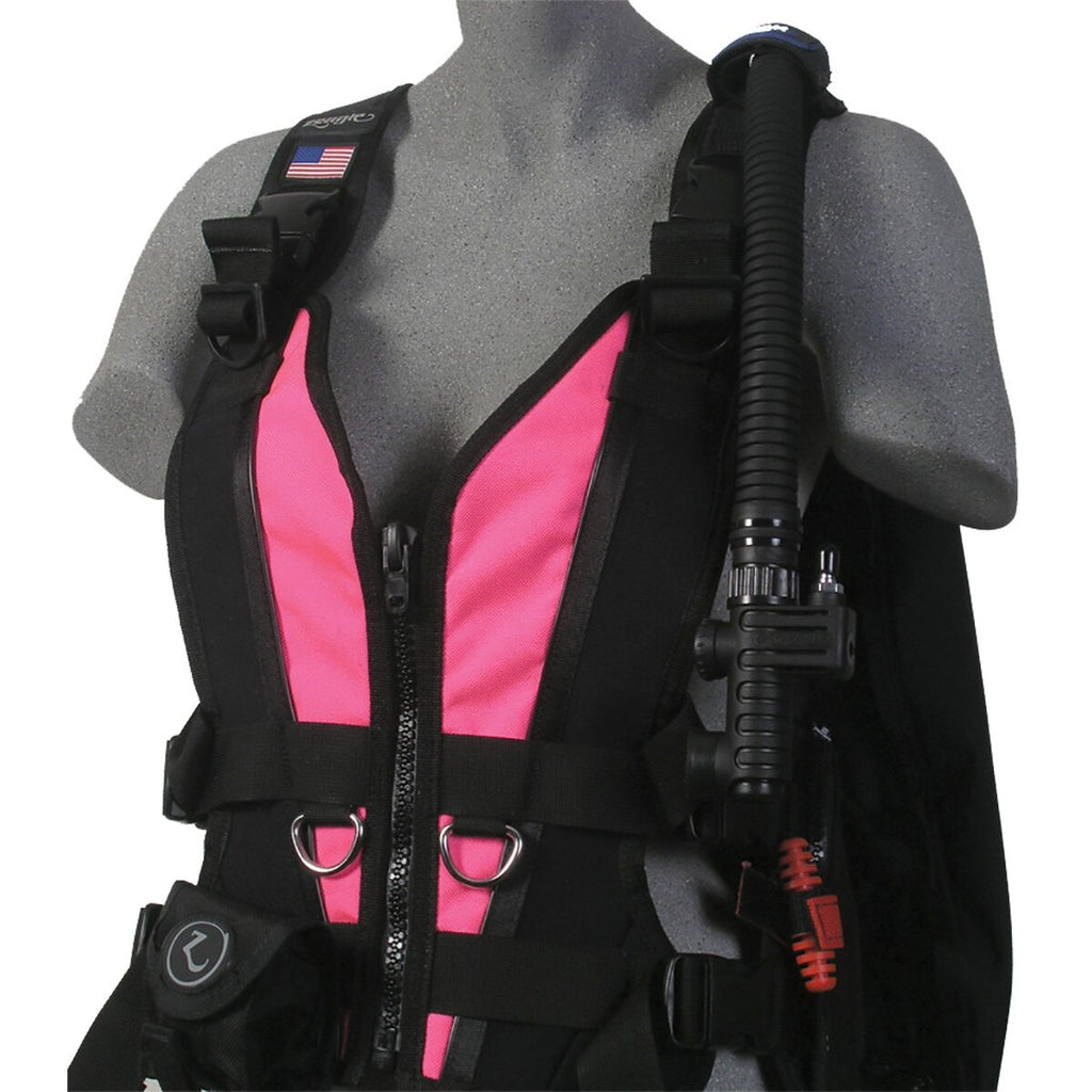 The Zena's twin waist and hip band system provides a way to securely position weight below waist level, around the body's center of buoyancy. This system was designed by women, for women. Twin straps adjust to waist and hips independently providing outstanding fit and comfort. The Zena closes in the front with a heavy-duty zipper for a snug and secure, yet nonrestrictive fit.